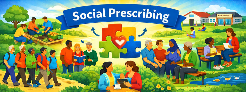 We believe Social Prescribing reduces health inequalities and improves wellbeing by targeting the social determinants of health.